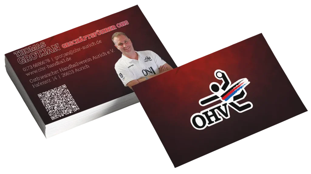 Auch Visitenkarten durften nicht fehlen – natürlich im passenden Design und im Look des Vereins. Klar, übersichtlich und bereit, verteilt zu werden.